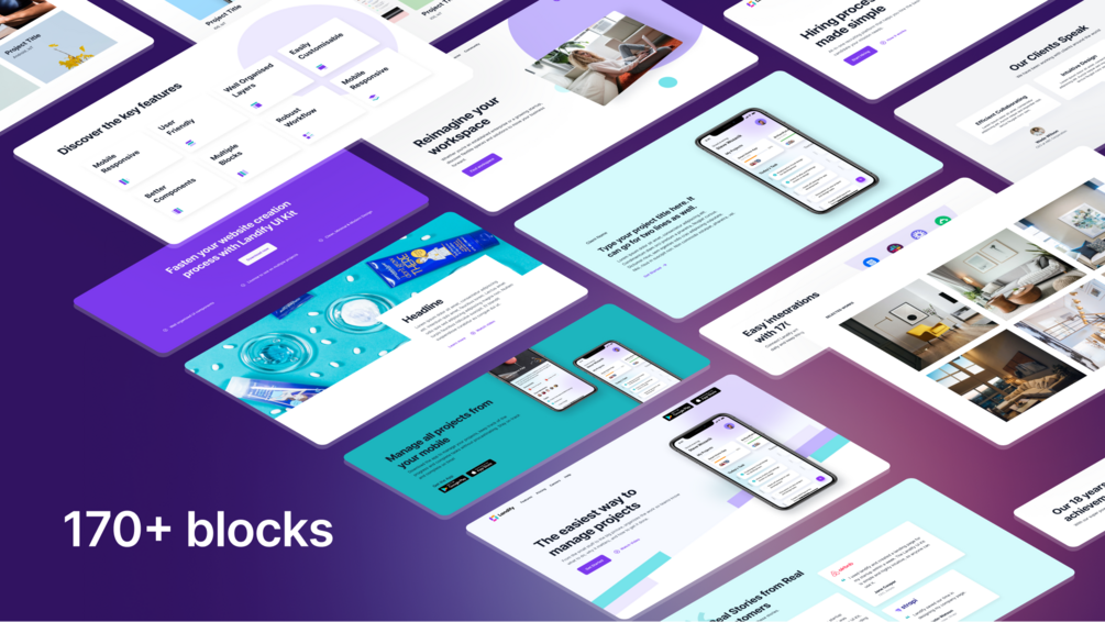 Landify is a landing page UI kit for Figma, created to help designers design the landing page quickly without having to spend much time. It is crafted with a vision to support any web project thereby creating a block system that helps with all the use cases. The kit contains 170+ blocks and 500+ components. It's fully customisable, well-organised layers, text, color and effect styles.