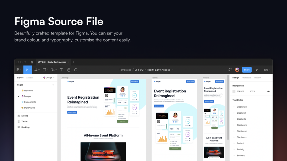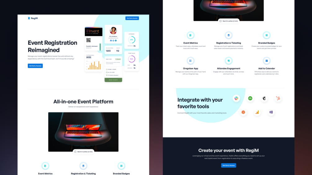 RegiM is an early access landing page template for SaaS products. You can set your brand colour, and typography, customise the content and get your early access page ready in a few minutes. The template is available in both design and code files.